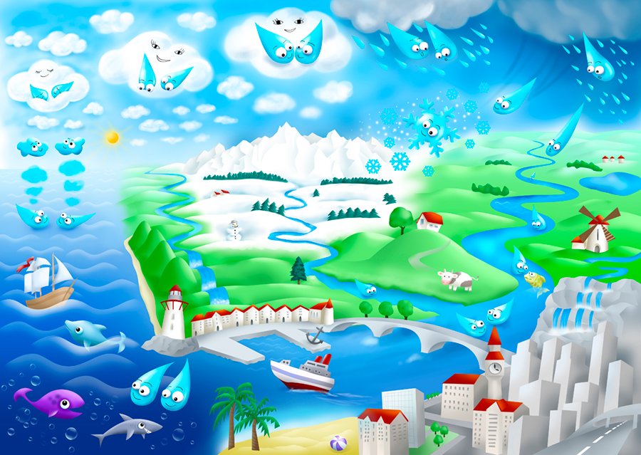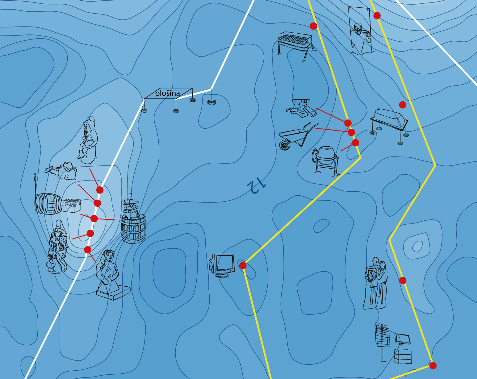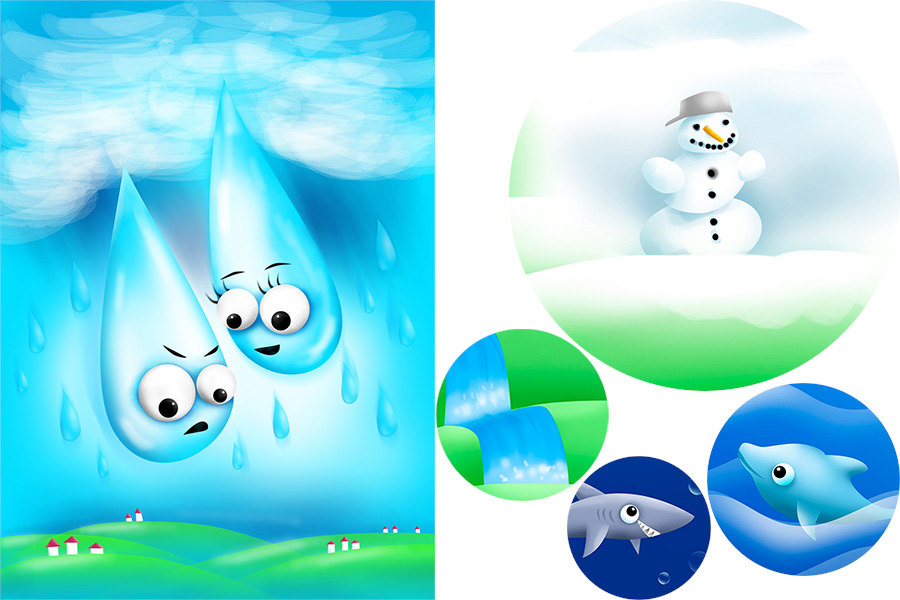 Kolobeh vody je vzdelávacia pomôcka – rozprávka pre škôlky. Robil sa na formát A1 Mapa dna pre potápačov mapuje atrakcie na jazere Guláška.