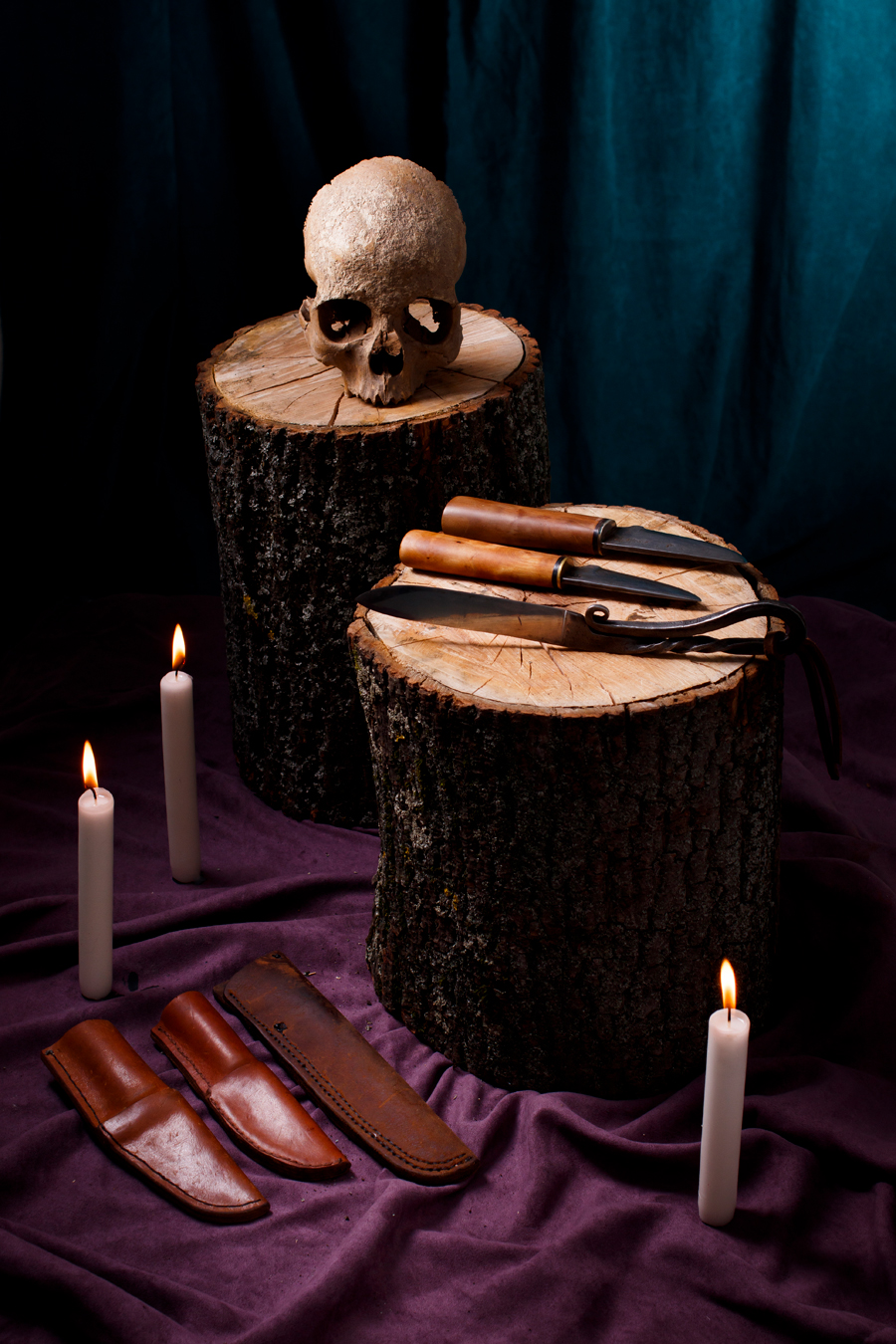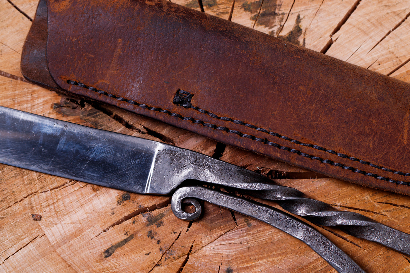 Ručne kuté nože s originálnymi rúčkami a púzdrami.